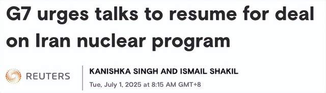 当地时间6月30日(周一),七国集团(G7)外长最新的联合声明中,表示支持以色列与伊朗之间的停火协议,敦促相关各方重启谈判,以达成针对伊朗核计划的全面协议。